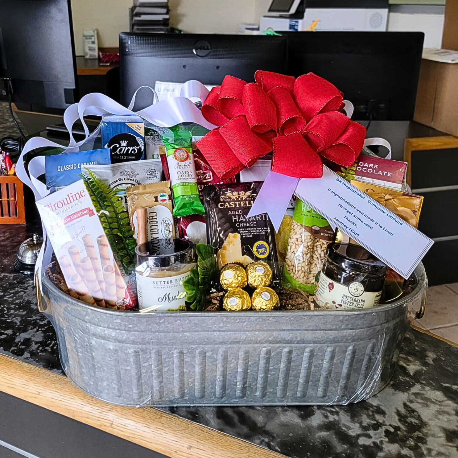 We create all-occasion gift baskets for every moment that matters — corporate gifting, closing gifts, retirement, holidays, birthdays, thank you, anniversary, congratulations, appreciation, comfort and care, housewarming, graduations, sympathy, friendship, new baby, get well, and more.
